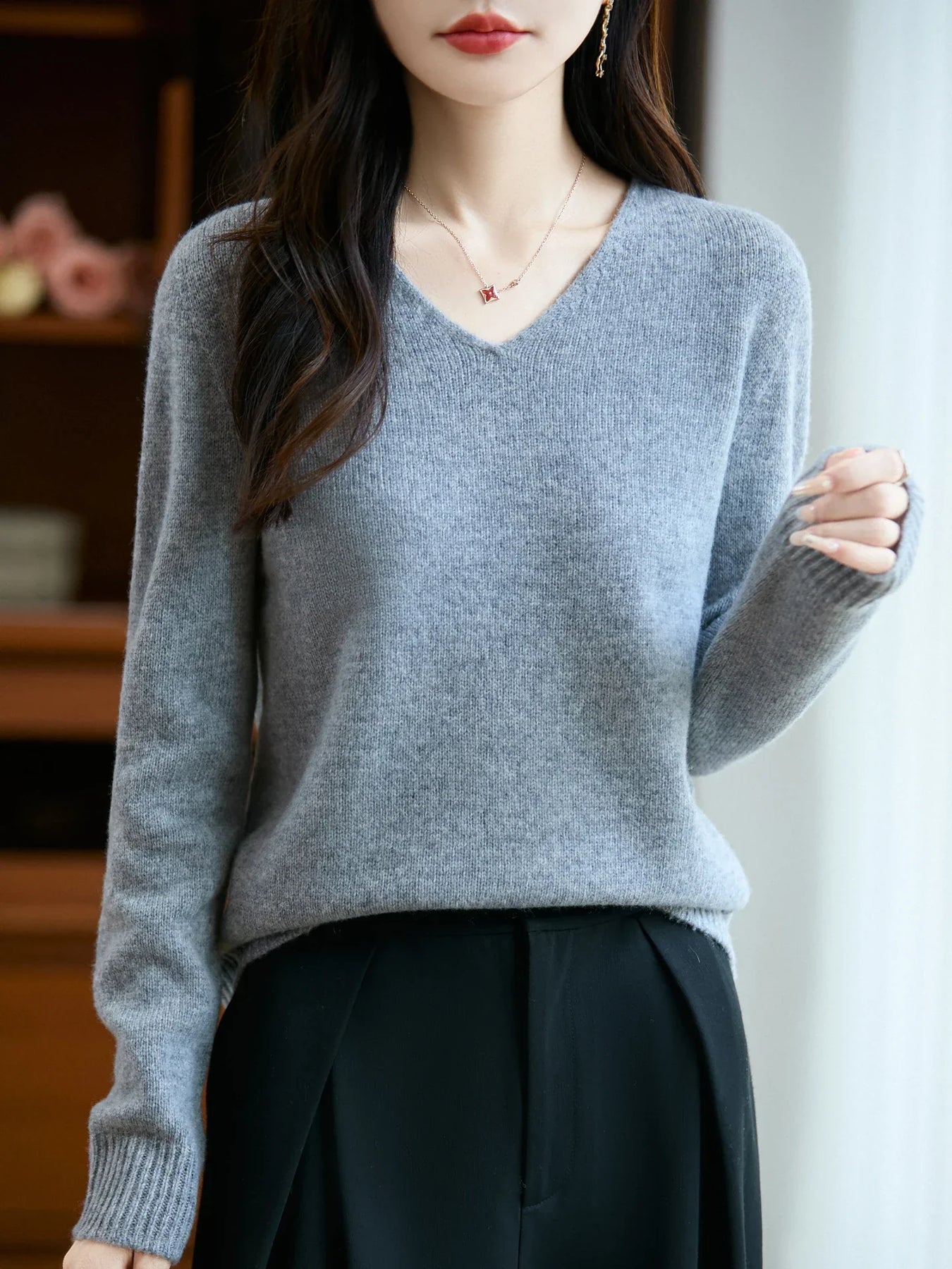• Elegant & Feminine: The classic V-neckline creates a flattering look and enhances the feminine style of the jumper.